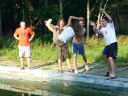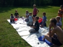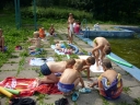 Dneska byl nejhezčí den od začátku tábora. Dopoledne většina oddílu strávila buď v lese, na hřišti, nebo při nácviku střelby. V odpoledních hodinách jsme se konečně osvěžili v táborovém bazénu a užívali si teplého slunečného dne.