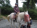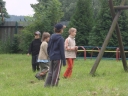 Sobotní ráno bylo sice pochmurné, ale nás to neodradilo od našeho výletu. První čtyři oddíly vyrazily do Stašova. Pro vylepšení nálady za deštivého počasí jsme pro děti na cestu vymysleli hru "STOPOVANÁ". Hra spočívala v tom, že jsme rozdělili oddíly do dvou skupin. První vyrazil 2. a 4. oddíl, aby mohl po cestě vyvěsit pro 1. a 3. oddíl úkoly. Jeden z úkolů spočíval v zazpívání písničky Pec nám spadla, dalším úkolem byla pauza na svačinu spolu s prosbou o zastavení deště. Když druhé dva oddíly dorazily k tomuto úkolu, snědly si svačinu tak déšť ustal. Ve Stašově jsme měli pro děti překvapení, a to v podobě jízdy na koních. Když se každý vystřídal v jízdě na koni, tak jsme si šli odpočinout na dětské hřiště, které je též ve Stašově. Děti dojedly své svačiny a poté jsme plní elánu vyrazili zpět do tábora s velikou chutí na večeři. Cestou zpět nám už nepršelo a tak jsme si cestu užívali a kochali se okolní přírodou. Do tábora jsme dorazili těsně před večeří,a přestože byly děti velice unavené první věta, kterou v táboře pronesly byla: Budeme hrát dnes celotáborovou hru? :)
