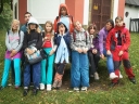 Sobotní ráno bylo sice pochmurné, ale nás to neodradilo od našeho výletu. První čtyři oddíly vyrazily do Stašova. Pro vylepšení nálady za deštivého počasí jsme pro děti na cestu vymysleli hru "STOPOVANÁ". Hra spočívala v tom, že jsme rozdělili oddíly do dvou skupin. První vyrazil 2. a 4. oddíl, aby mohl po cestě vyvěsit pro 1. a 3. oddíl úkoly. Jeden z úkolů spočíval v zazpívání písničky Pec nám spadla, dalším úkolem byla pauza na svačinu spolu s prosbou o zastavení deště. Když druhé dva oddíly dorazily k tomuto úkolu, snědly si svačinu tak déšť ustal. Ve Stašově jsme měli pro děti překvapení, a to v podobě jízdy na koních. Když se každý vystřídal v jízdě na koni, tak jsme si šli odpočinout na dětské hřiště, které je též ve Stašově. Děti dojedly své svačiny a poté jsme plní elánu vyrazili zpět do tábora s velikou chutí na večeři. Cestou zpět nám už nepršelo a tak jsme si cestu užívali a kochali se okolní přírodou. Do tábora jsme dorazili těsně před večeří,a přestože byly děti velice unavené první věta, kterou v táboře pronesly byla: Budeme hrát dnes celotáborovou hru? :)