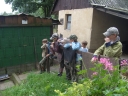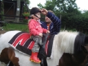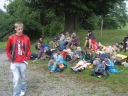 Sobotní ráno bylo sice pochmurné, ale nás to neodradilo od našeho výletu. První čtyři oddíly vyrazily do Stašova. Pro vylepšení nálady za deštivého počasí jsme pro děti na cestu vymysleli hru "STOPOVANÁ". Hra spočívala v tom, že jsme rozdělili oddíly do dvou skupin. První vyrazil 2. a 4. oddíl, aby mohl po cestě vyvěsit pro 1. a 3. oddíl úkoly. Jeden z úkolů spočíval v zazpívání písničky Pec nám spadla, dalším úkolem byla pauza na svačinu spolu s prosbou o zastavení deště. Když druhé dva oddíly dorazily k tomuto úkolu, snědly si svačinu tak déšť ustal. Ve Stašově jsme měli pro děti překvapení, a to v podobě jízdy na koních. Když se každý vystřídal v jízdě na koni, tak jsme si šli odpočinout na dětské hřiště, které je též ve Stašově. Děti dojedly své svačiny a poté jsme plní elánu vyrazili zpět do tábora s velikou chutí na večeři. Cestou zpět nám už nepršelo a tak jsme si cestu užívali a kochali se okolní přírodou. Do tábora jsme dorazili těsně před večeří,a přestože byly děti velice unavené první věta, kterou v táboře pronesly byla: Budeme hrát dnes celotáborovou hru? :)